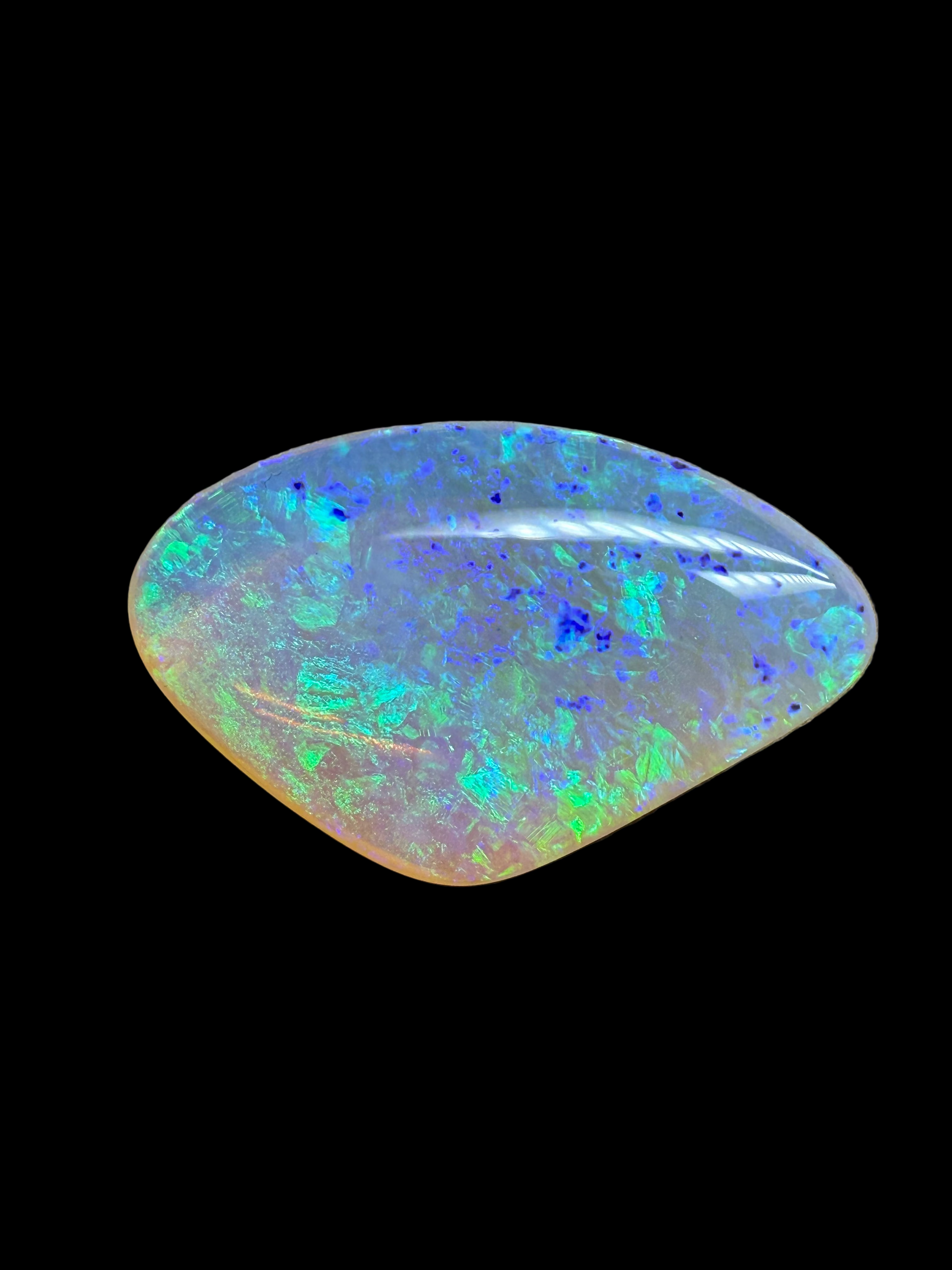 Dieser wunderschöne 14.2ct Crystal Opal aus Lightning Ridge verzaubert mit seinem einzigartigen 3D-Farbspiel. Durch die doppelseitige Politur erstrahlt er in voller, doppelseitiger Pracht. Ein außergewöhnlicher Stein, der offen gefasst zu einem absoluten Hingucker wird.
